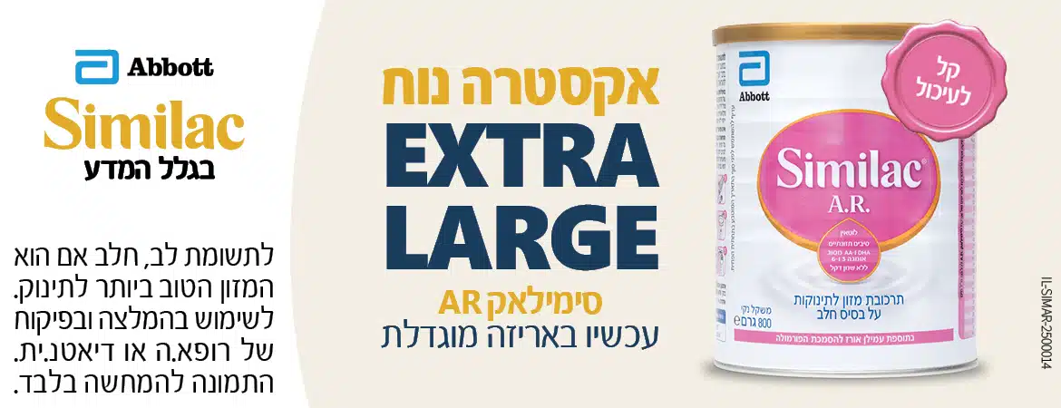 סגירת הודעה זו תעביר אתכם לאתר סימילאק, ומהווה אישור כי הנכם מודעים לכך שהאתר יספק מידע אודות הריון, הנקה, תרכובות מזון לתינוקות של סימילאק ועוד.